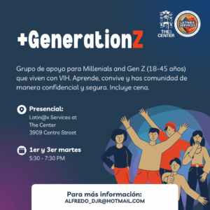 Grupo de apoyo para Millenials and Gen Z (18-45 años) que viven con VIH. Aprende, convive y has comunidad de manera confidencial y segura. Incluye cena. Lugar: Latin@x Services at The Center Fecha: Cada 1er y 3er martes del mes Hora: 5:30 PM – 7:30 PM Para más información: Alfredo a (619) 886-2131 o alfredo_djr@hotmail.com ...