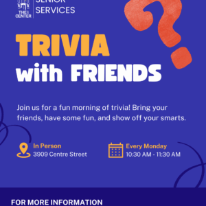 50+ And Better Together at The Center invites you to Trivia with Friends! Please join us for a fun morning of trivia every Monday prior to the Congregate Meal Program. Bring your friends, have some fun, and show off your smarts! Did you know there are benefits to trivia? A vital benefit of trivia games […] ...