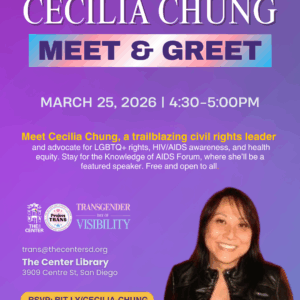 It’s time for self-care with our free, confidential HIV/HCV testing and STI screenings in a compassionate and sex-positive environment with connections to health care and resources. Make your appointment today – call us at 619.487.9980 or email bethegeneration@thecentersd.org to make an appointment. We are open Monday-Friday 10am-7pm and Saturdays 10am-3pm by appointment. Walk-ins will be […] ...