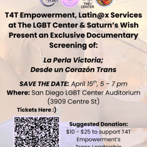 Join us at The Center for the Annual Trans Day of Empowerment on Friday, April 3, 2026 TDOE is an annual tradition where we celebrate our trans and nonbinary community. Start the festivities with the TDOE Empowerment March from 3:30pm-4:30pm. The march begins at the Hillcrest Sign on University/5th Ave. and ends at The San […] ...