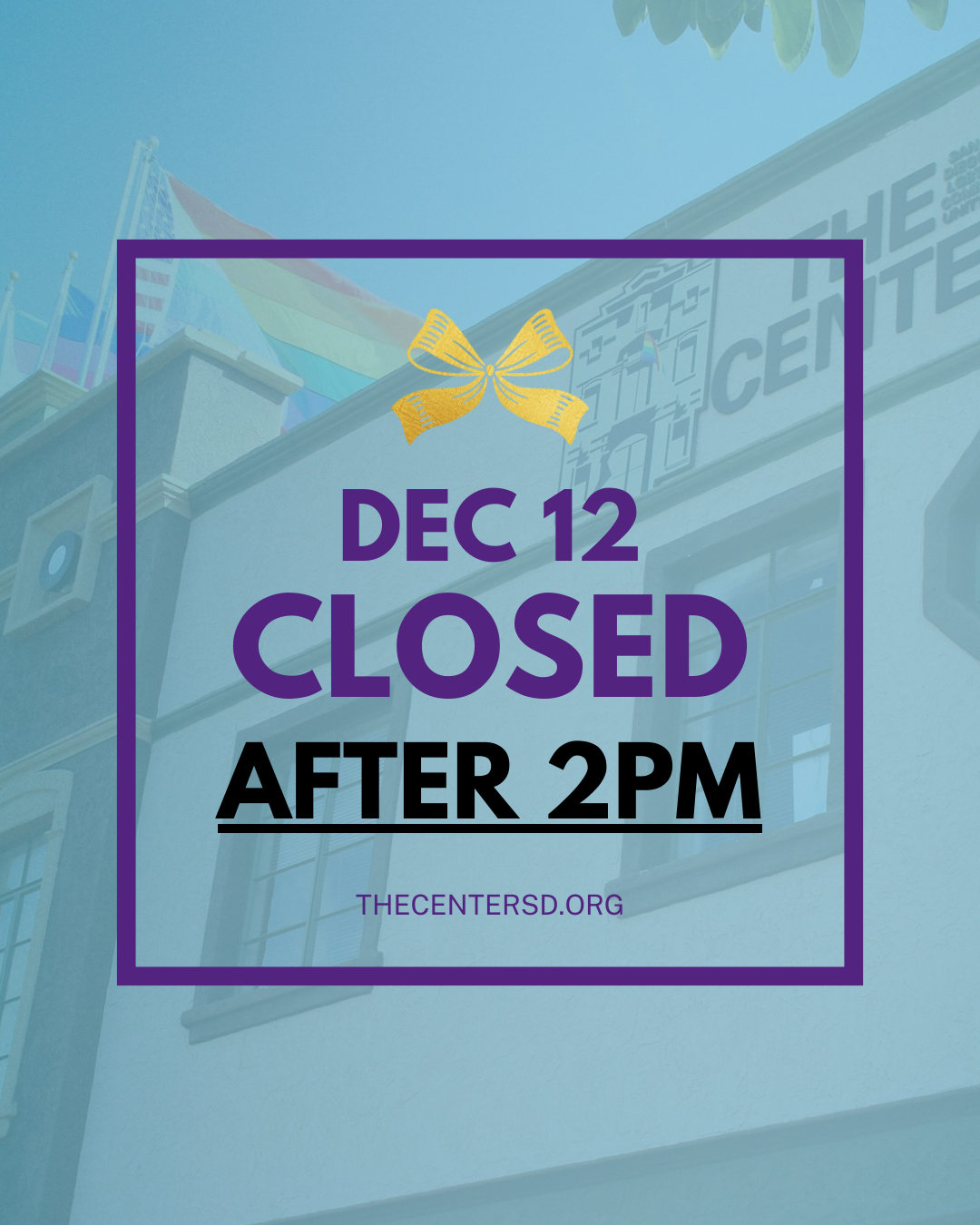 On Friday, December 12, 2025, The Center will be closed at 2pm for a staff appreciation event. We will be open on Saturday, December 13.