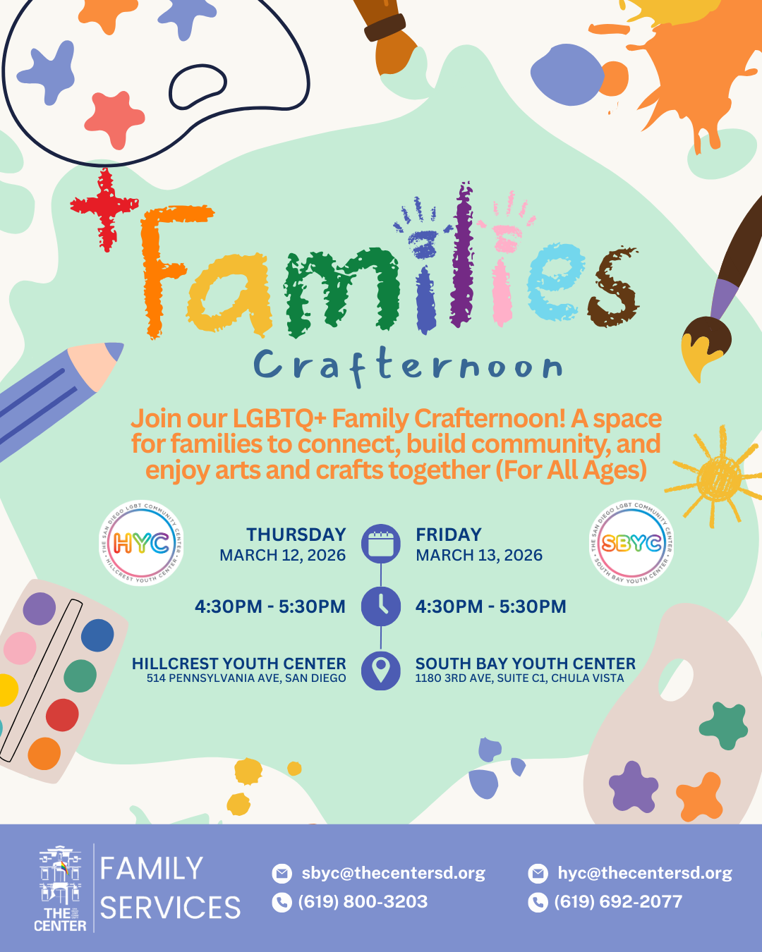 - Where: Hillcrest Youth Center, 514 Pennsylvania Ave, San Diego