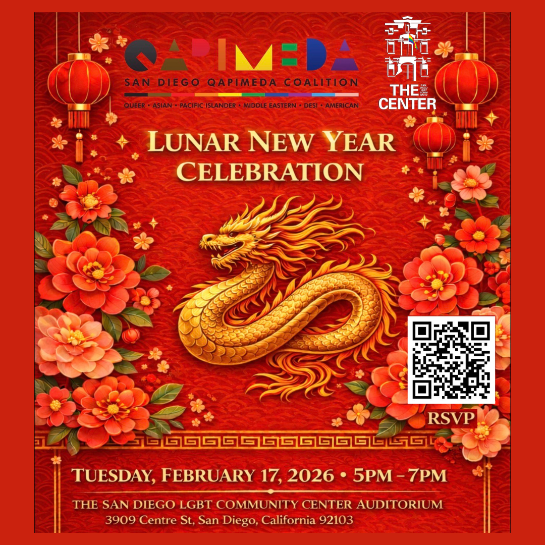 Looking for yummy food, fun activities, and connecting with community? Join us at our Lunar New Year Social, in collaboration with QAPIMEDIA and The San Diego LGBT Center, for a night of culture and celebration! This is a free space centering those living on the intersection of being LGBTQIA+, Asian, Pacific Islander, Middle Eastern, and Desi.