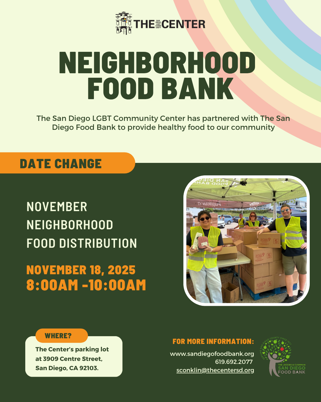 - Contact: Visit the San Diego Food Bank website at www.sandiegofoodbank.org or contact Stephanie Conklin (she/her) at sconklin@thecentersd.org.
