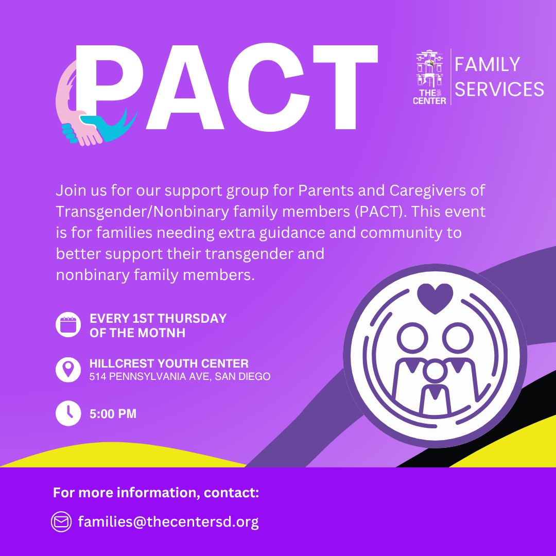 Join us for our support group for Parents and Caregivers of Transgender/Nonbinary family members (PACT). This event is for families needing extra guidance and community to better support their transgender and