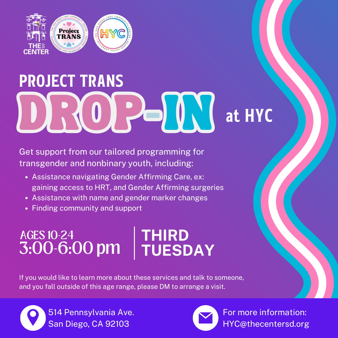 Where: Hillcrest Youth Center, 514 Pennsylvania Ave, San Diego