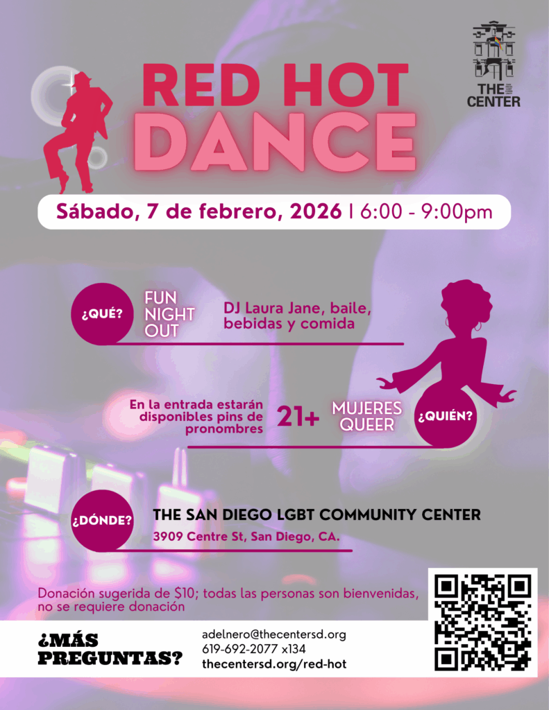 Para obtener más información sobre este evento, manda un correo a women@thecentersd.org.