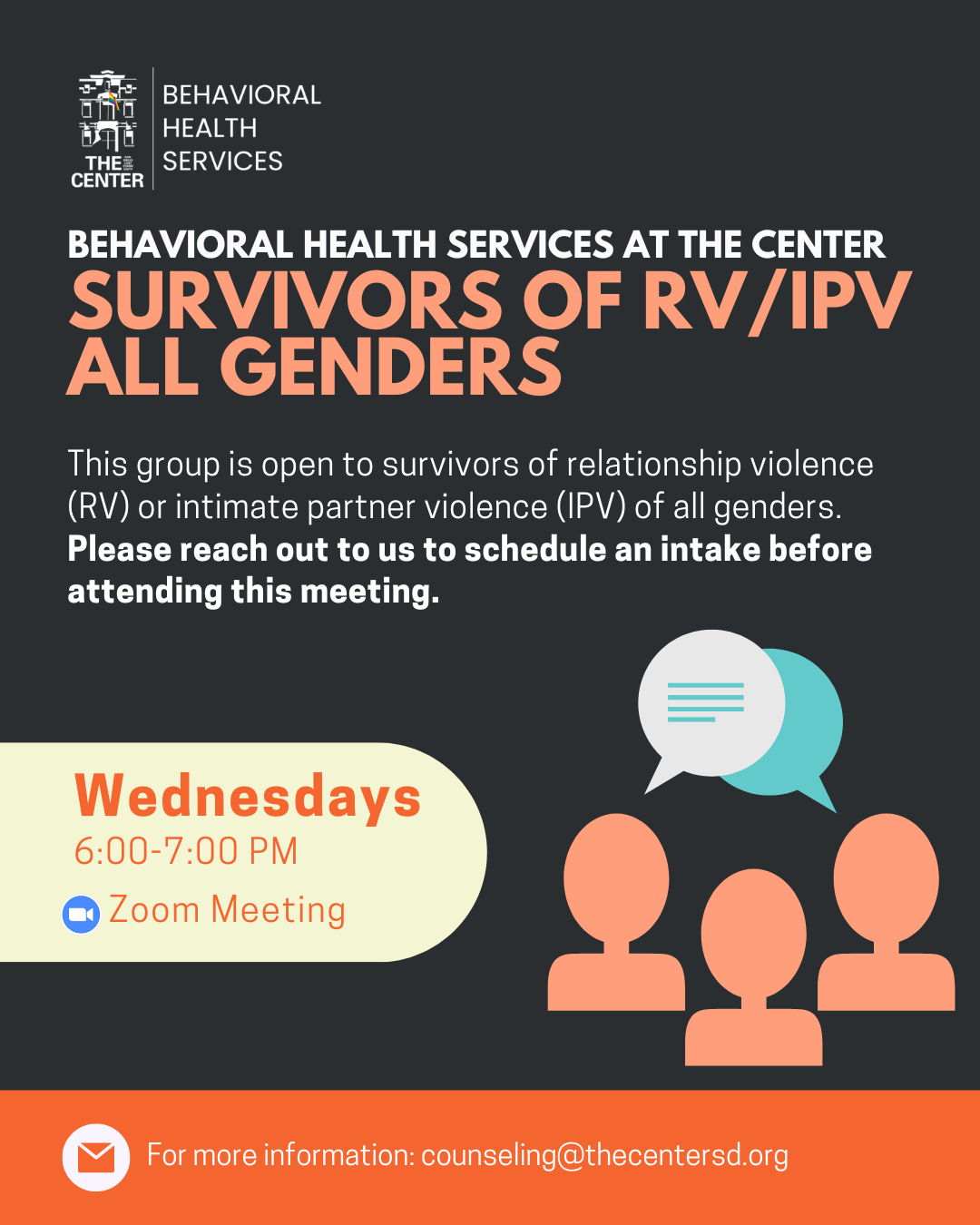 This group is open to survivors of relationship violence (RV) or intimate partner violence (IPV) of all genders.