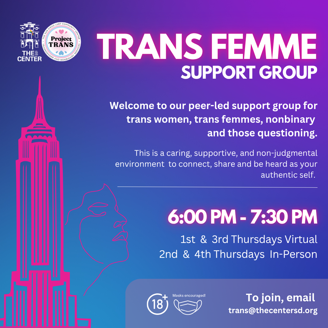 Welcome to our peer-led support group for trans women, trans femmes, nonbinary, and those questioning.