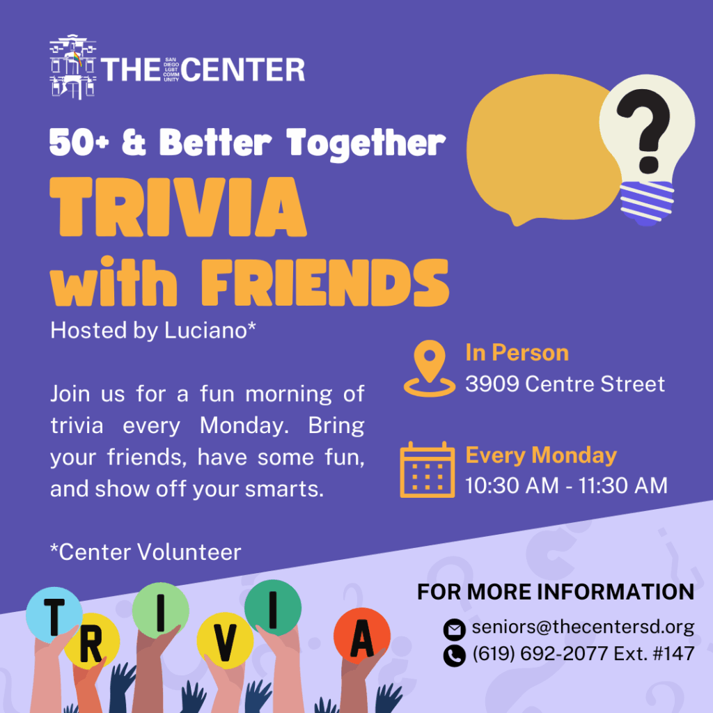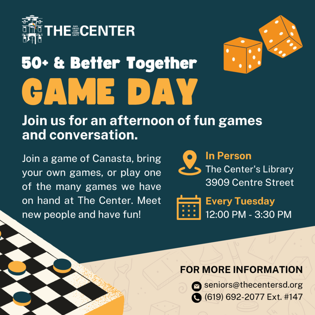 Get your library card, check out one of the LGBTQ+ books from our vast collection, or get a recommendation from one of our library volunteers! Regular Hours: Open Monday-Friday, 10AM – 4PM For more information, please contact seniors@thecentersd.org or 619.692.2077. extension 147. ...