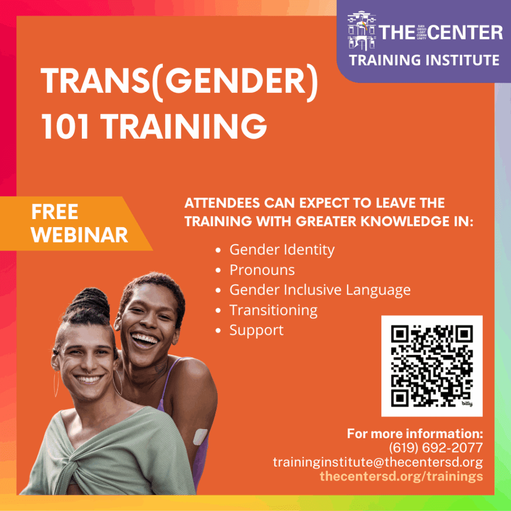 The San Diego LGBT Community Center’s Training Institute works with a variety of individuals, organizations, businesses, and social service organizations to strengthen knowledge and skills in working with the LGBTQ+ community. The needs of the LGBTQ+ community are ever evolving. The Center’s Training Institute is here to support you by covering a broad range of topics. All trainings are led by our knowledgeable and skilled staff members at The Center.
